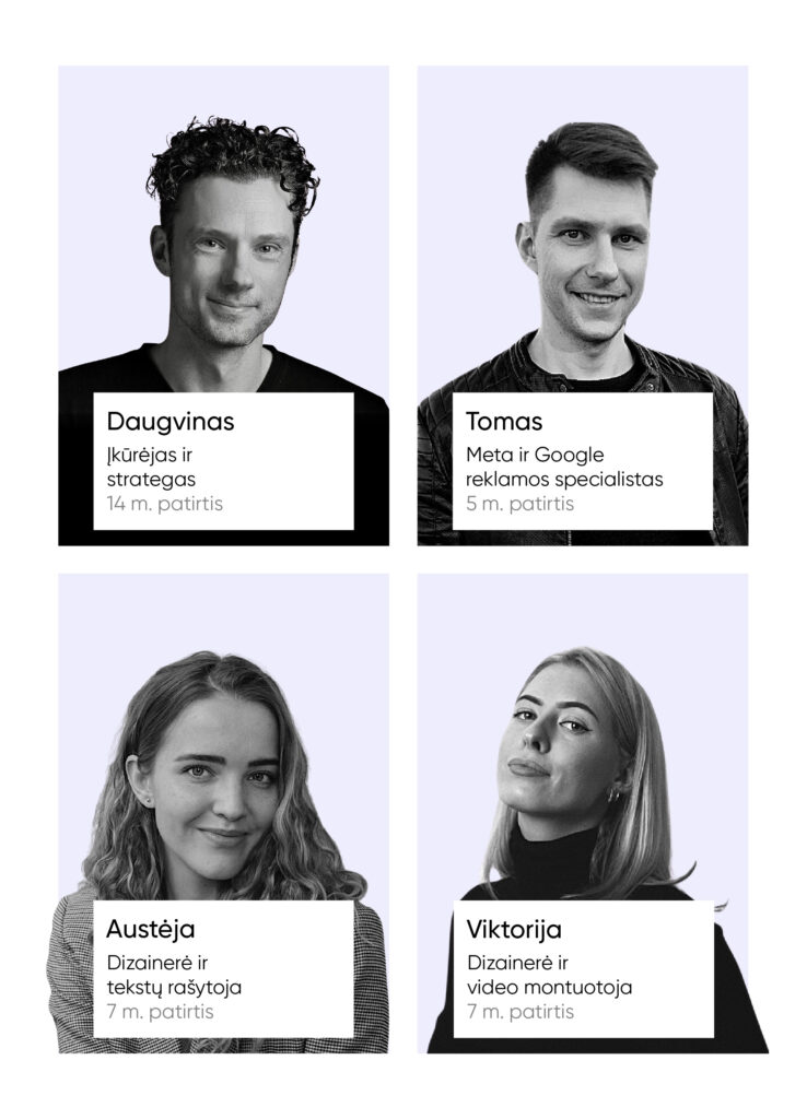 Į pardavimus orientuotų Facebook, Instagram, Google reklamos specialistų komanda.